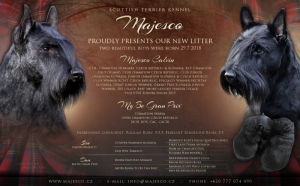 | | V CHS se narodila ze spojení JCH CH INT BIS Calvin Majesco CW a JCH CH Geraldine Daisy Majesco CW štěňátka skotského teriéra. 3 klučíci (černý / žíhaný) a 1 hočička (černá). Rodiče jsou testování na CMO a vWD3. | | |