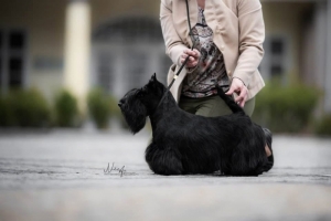 Lancelot du Lac Majesco - černý pejsek, zůstává v ČR u majitelů, kteří měli jeho praděda, velmi úspěšného imppozantního černého psa Scozias Look at Time. Lensi, jak jej domácky volají majitelé, roste do krásy i jeho podoby. Jako mladý pejsek si odnesl titul BIS junior pes z krajské výstavy v Praze a dokončil v r. 2024 titul JCH České republiky. Gratulujeme a těšíme se na jeho další výstavní kariéru!