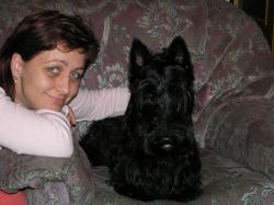 | Zvířata a především psy jsem milovala odmalička. Doma v paneláku jsem psa mít nemohla, takže jsem aspoň cvičila cizí psy na kynologických cvičištích v Ostravě Mariánských horách a v Janové. Rukama mi prošli zejména kříženci, se kterými jsem se účastnila přeborů ve sportovní kynologii a dotáhla to i na celostátní zkoušky s mým oblíbeným ovčákem Cézarem. Byl to mimořádně nadaný pes, zvládal veškeré hlasové i posunkové povely, ale protože byl "bezpapírákem", zůstalo u jediné zkoušky v jeho životě. Po ukončení studia na vysoké škole však bylo zcela jasné, že si brzy pořídím nějakého vlastního chlupáče. Jenže s nedostatkem času jsem musela volit menší plemeno, které bys naplnilo mé představy. Již v té době jsem navštěvovala výstavy psů, kterých bylo velice poskrovnu, ale tyto akce mě nadchly atmosférou natolik, že jsem začala hledat plemeno vhodné na vystavování. Již si nepamatuji, jak a kde vznikl ten prvotní impulz, který rozhodl, že to bude skotský teriér, ale volba byla osudová a navždy změnila můj i životy mých nebližších. Psal se rok 1992 a do mého života vešel můj první skutečný skotský teriér Brixi Eldorado. Dostali jsme ho takřka darem od jednoho nejmenovaného majitele. Byl ve špatném zdravotním stavu, zanedbaný a s řadou vad, které jej posléze vyloučily z výstavní kariéry. Ale byl náš a my jsme si ho hýčkali. A ponejvíce můj otec - zarytý odpůrce psů v panelácích. I přes svou velmi uzavřenou a bázlivou povahu se stal Brix osudovým psem, který otočil chod dějin a přesvědčil mého otce, že pes do rodiny patří a nikdy nebude jinak. Po 6 letech Brix uhynul na rakovinu, nicméně v té době jsem již měla vybrané další štěňátko z chovné stanice Lov. Byl to opět pejsek - Ufo Lov alias Brix 2 , který mi učaroval svou nádherně žíhanou srstí. A s ním jsem vpadla do víru výstav naplno. Absolvovala jsem s řadou stejně nadšených pejskařů mnoho výstav zejména ve východní Evropě (Rumunsko, Chorvatsko, Slovinsko). Brix obhájil řadu cenných titulů jak u nás tak v zahraničí. Jeho výstavní kariéra skončila předčasně v 6 letech, kdy se objevily první vleklé zdravotní potíže. Brix i přes veškerou péči veterináře uhynul v 10 letech. V tomto kritickém období jsem začala silně pochybovat, zda si mám znovu pořídit skotského teriéra, když jejich život končí tak tragicky. A v tomto životním okamžiku opět zasáhla ruka osudu a v chovatelské stanici Bohemia Eldorado se narodila 3 černá štěňátka. Dva kluci a jedna holčička. Bylo nade vší pochybnost jasné, že mít skotského teriéra je jako zvyk. A zvyk, to je železná košile. A tak jsem si domů přivezla dalšího člena rodiny Nera Wolfe Bohemia Eldorado . Malý divočák plný neutuchající energie a zápalu pro vše možné i nemožné vyrostl v psího elegána se vším, co k němu patří. Má v sobě entuziasmus a nesmírně vlídný vztah ke všem lidem a zejména k malým dětem, které bezmezně miluje. Je pro nás skvělým společníkem a průvodcem. Výstavy již absolvuje spíše sporadicky, nebot; dosáhl pocty nejvyšší a stal se interšampionem . Neroušek odešel na věčnost koncem zimy 2017. Bude nám moc chybět. Náš další přírůstek je fenka Summer Folly Lucia`s Dream alias Ela ze špičkové evropské chovatelské stanice paní Betty Smit - Kamerbeek. V ní jsme objevili nový rozměr soužití se skoty, zejména propojený s její holčičí náturou. Je nesmiřitelným pronásledovatelem koček a neochvějně se pustí do boje i se sousedovic dominantním kocourem. Chlupy pak z něho lítají na všechny strany. Na druhou stranu je mimořádně mazlivá a přítulná, takže občas zapomínáme, že je to čtyřnohé psisko a místo toho ji chováme v náručí, kde si spokojeně spinká. Je mnohonásobnou šampionkou České republiky, Slovenska, Polska, Maďarska a ve třech letech dokončila titul interšampiona . Je matkou resEUW 2012 GRANDCH CH,JCH Betty Majesco , BOB BIG I, Crufts nominace 2012, která se narodila se spojení s multiCH a vítěze Crufts show 2012 Stevie Wonderful Lucia`s Dream . Elinka dožila svůj život v kruhu rodinném a nečekaně odešla na věčnost dne 30.9.2017. S její ztrátou se budeme velmi těžce smiřovat. Koncem roku 2010 jsem dostala nabídku, zda bych nechtěla adoptovat dospělou fenku. První reakce byla automatická a já odmítla, vždyť mám již 2 psy a těšila jsem se, že si po naši Ele nechám do chovu štěńátko, až se nějaké narodí. Jenže ta nabídka byla stejně jako většina důležitých udalostí v životě prostě natolik zajímavá (že by osud?), že jsem neodolala a za pár dnů bylo rozhodnuto. A máme nový přírůstek Je jím Elis Wys-Tabasko alias Bari od renomované chovatelky Jany Šimberové, která nás okouzlila svou přítulnou povahou a důvěřivostí, která se každým dnem prohlubuje. Doplnila tak chovnou skupinu o krevní linii s anglickými předky. Bari nám dala tři vrhy zdravých štěňátek, z nichž jsme si ponechali černou holčičku April, kterou voláme Ada a žíhaného pejska Calvina alias Bedyho . I když Bari byla vystavovaná sporadicky a výstavy nemilovala, jako matka byla dokonalá, dokonalá byla i její oddanost k naší rodině. Bari odešla tiše mezi anděly ve svém domově v červnu 2017. Velmi velmi nám chybí.